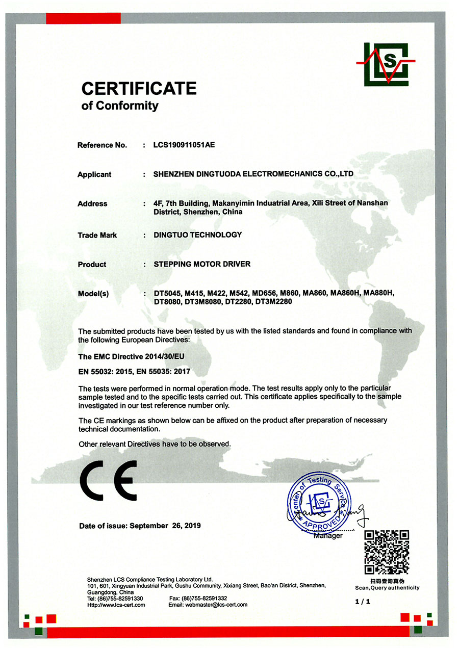步進驅動器CE認證證書