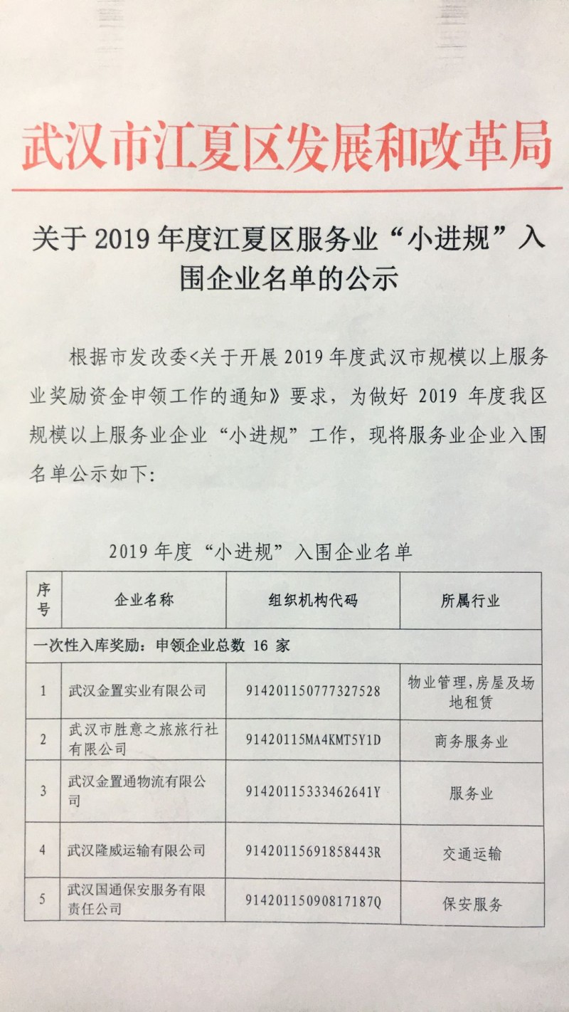 關(guān)于2019年度江夏區(qū)服務(wù)業(yè)“小進規(guī)”入圍企業(yè)名單的公式