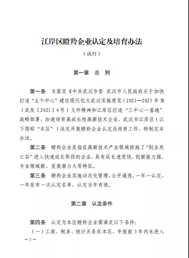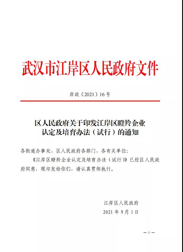 江岸區(qū)發(fā)布瞪羚企業(yè)認(rèn)定及培育辦法(試行)的通知
